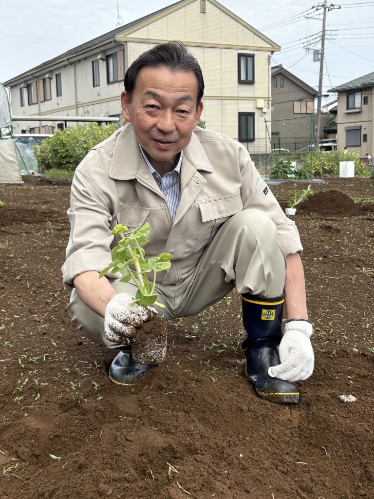 5月18日(日)、「桶川ジャンボスイカ愛好会」から配布された苗の植え付けを行いました。