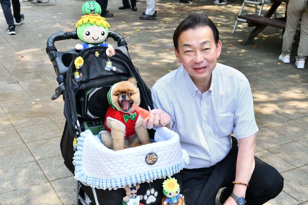 また、23日のコンテスト当日は、桶川市観光協会PR犬の「茶々丸」もジャンボスイカを見に来てくれました。