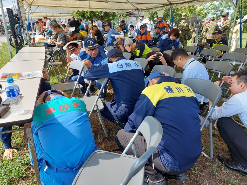 今年の埼玉県の訓練会場は幸手市で、茨城県南部を震源とするM7.3の地震が発生し、幸手市内で震度6強の揺れを観測したとの想定で、各機関参加のもと開催されました。