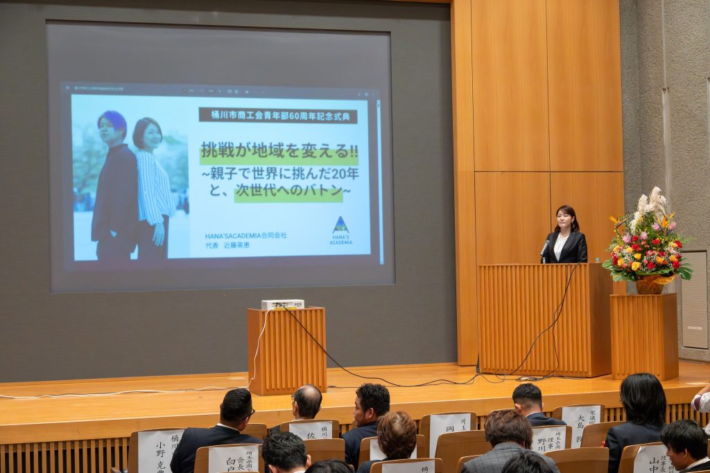 式典後には、セブ島を拠点に「親子で世界に挑戦する教育・企業モデル」を築き、日本と海外を繋ぐ社会起業家として活躍されている近藤英恵様による記念講演(挑戦が地域を変える~家族で世界に挑んだ20年と次世代へのバトン~)が行われました。