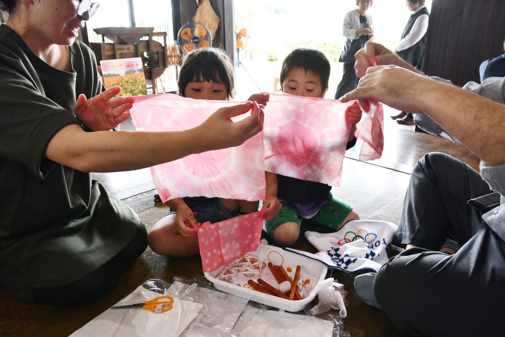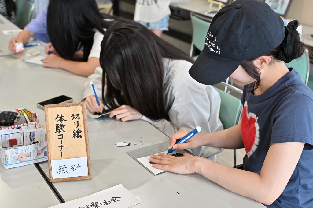 また、生涯学習センターでは、べに花染め体験や、切り絵体験などが行われました。