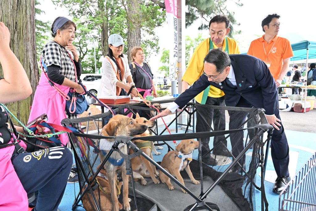 べに花まつりでは毎年恒例の保護犬・保護猫譲渡会が農業センターにて開催され、来場された皆さんそれぞれ、和やかな雰囲気の中でワンちゃん達と触れ合っていました。譲渡会を通じ、新しい素敵な家族と早く出会えることを願っています。